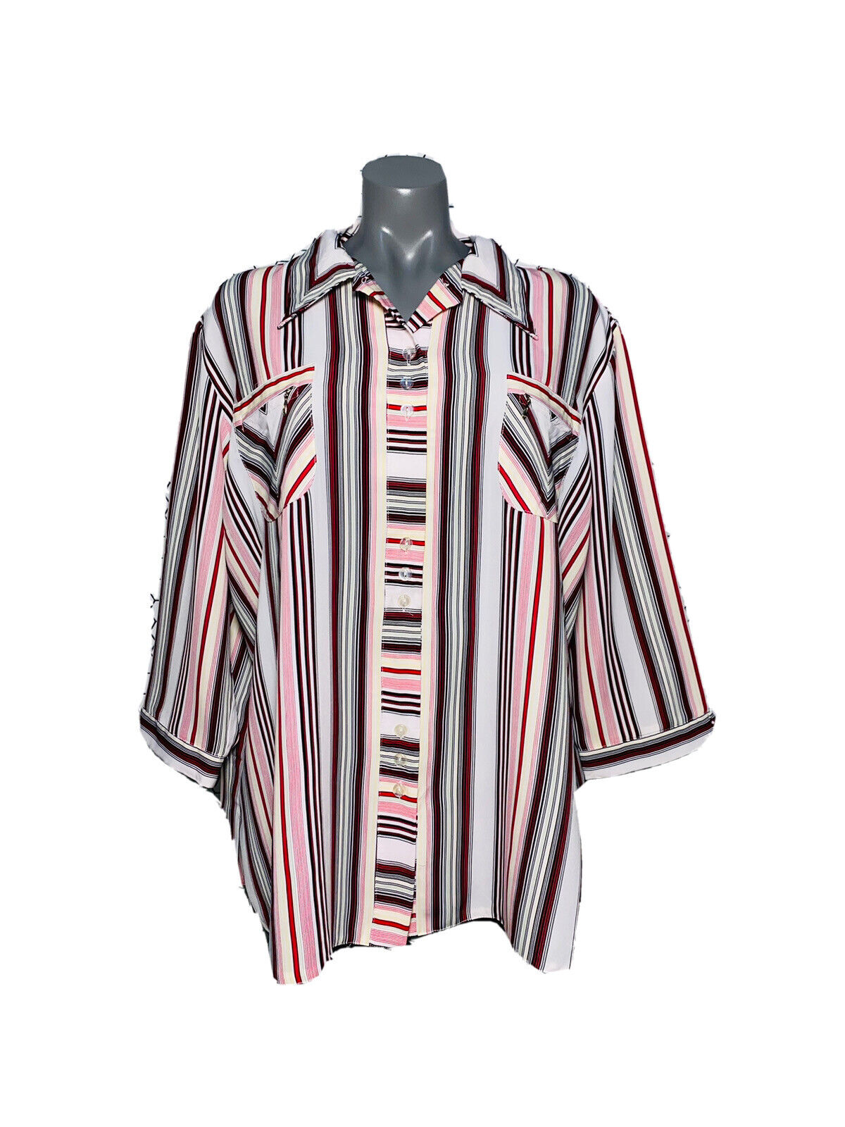 LOVELY DOMITEX STRIPED PATTERN PRINT VINTAGE WOMANS BLOUSE XXXL