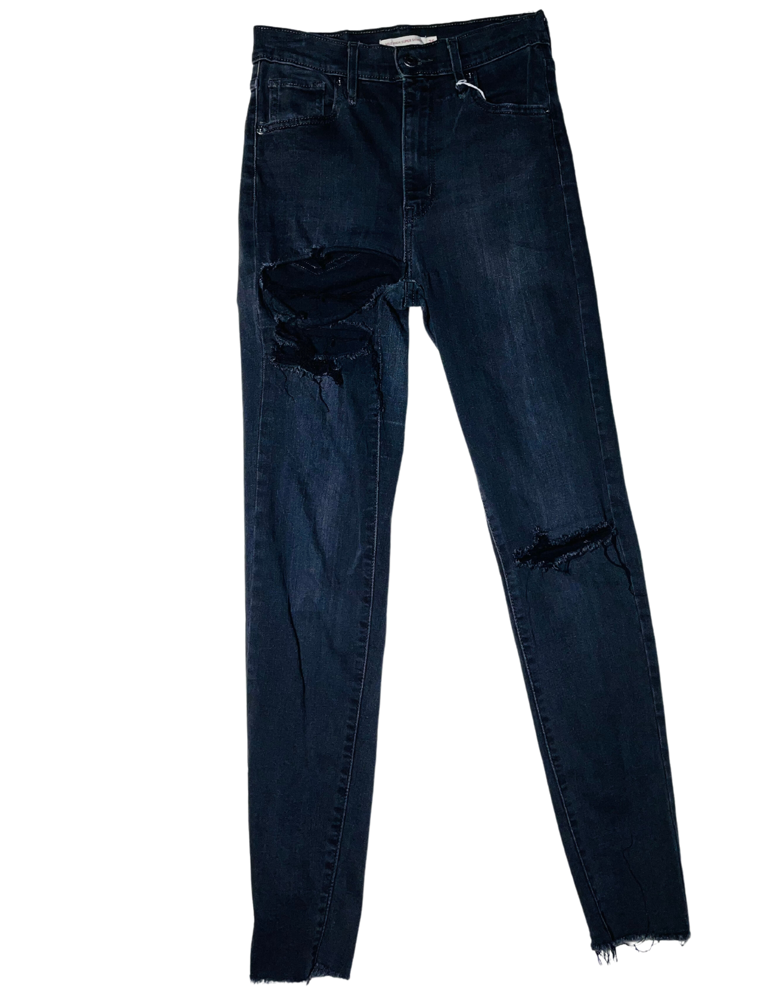 BLACK RIPPED LEVI MILE HIGH SUPER SKINNY DENIM JEANS