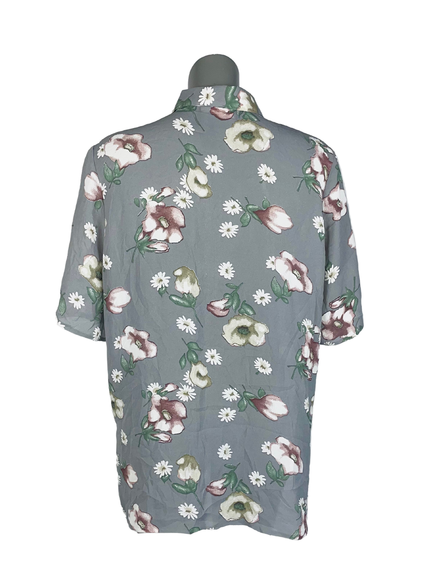 GREY PEACOCK FLOWER PRINT BLOUSE SIZE 16